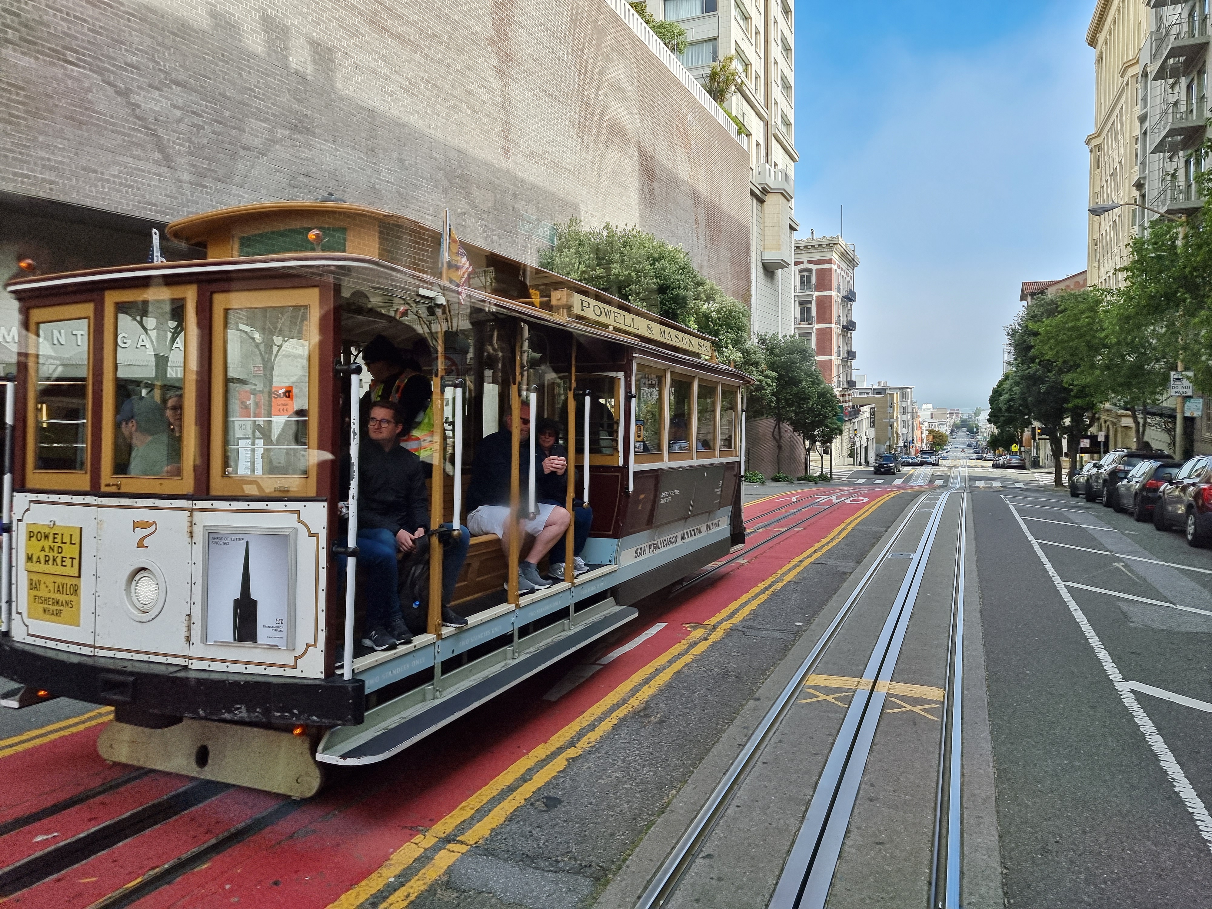 Lot z Dubaju do San Francisco trwał 16h, co było jedyną dużą uciążliwością całych wakacji. Różnica czasu wyniosła 11 h więc trochę potrwało zanim się przyzwyczailiśmy. Miasto jest ciekawe, ale pogoda była trochę zniechęcająca, właściwie można powiedzieć że doświadczyliśmy przez 2 dni 4 pór roku, bo raz było ok. 12 st C i kropiło, a jak było słońce to i tak mocno wiało 😅 A potem jak już poświeciło to lekko nas przypiekło na buraczka... Wszystko dzięki wpływom prądów zatokowych, które mieszają wody koło San Francisco podowując nieustanne mgły i chmury, zwłaszcza przy wejsciu do zatoki gdzie znajduje się most Golden Gate.